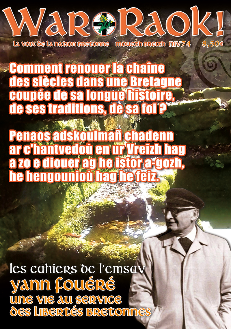 Bienvenue sur le site dédié à War Raok ! La Voix de la Nation Bretonne. Nous espérons qu'il vous permettra de faire connaissance avec une revue authentiquement bretonne et réellement engagée dans le combat national breton. Arts, politique, actualités, écologie, histoire, patrimoine, etc. sont autant de sujets que nous abordons sans faux semblants ni complaisance. War Raok est la revue de tous les Bretons, revue unique et moderne qui exprime des idées généreuses et des vérités dans un esprit libre et indépendant.